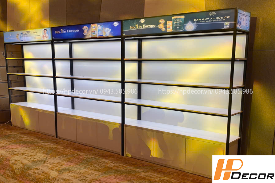 Lắp đặt tủ trưng bày bán hàng sữa và thực phẩm bổ sung trẻ em theo yêu cầu, kích thước và màu sắc sản xuất theo đặt hàng giá rẻ.