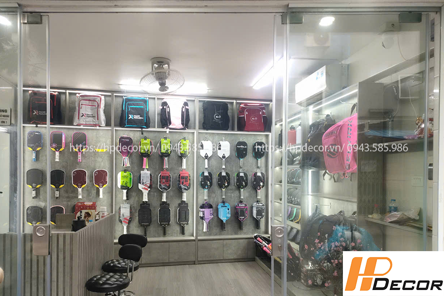 Thi công nội thất cửa hàng bán vợt pickleball tại Hà Nội và các tỉnh thành trên cả nước, nhận thiết kế theo yêu cầu riêng, sản xuất và lắp đặt tận nơi nhanh chóng, giá rẻ.